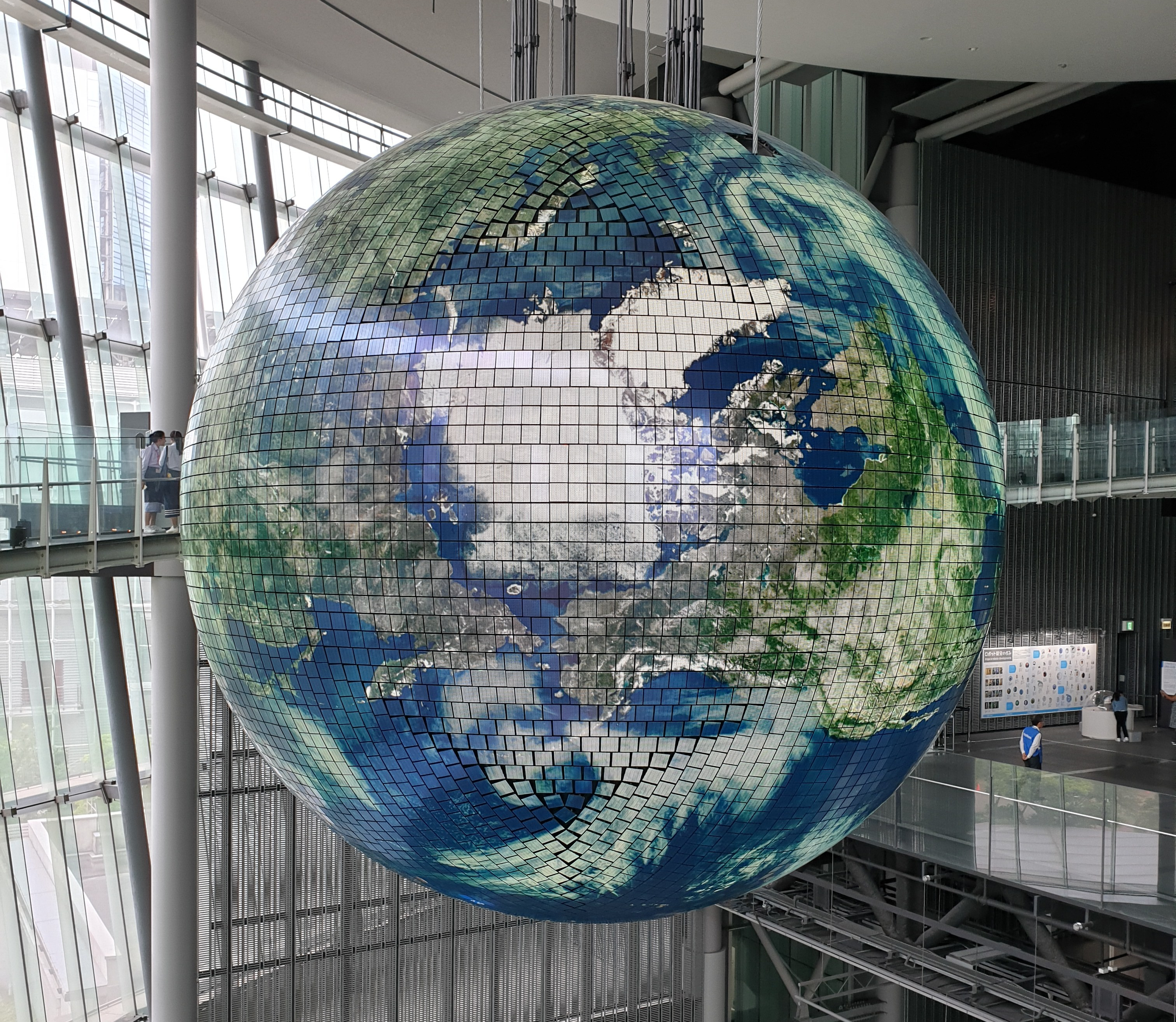 The giant discoball of Miraikan, where they projected different things every 15 minutes, and this revolving Earth between showings.