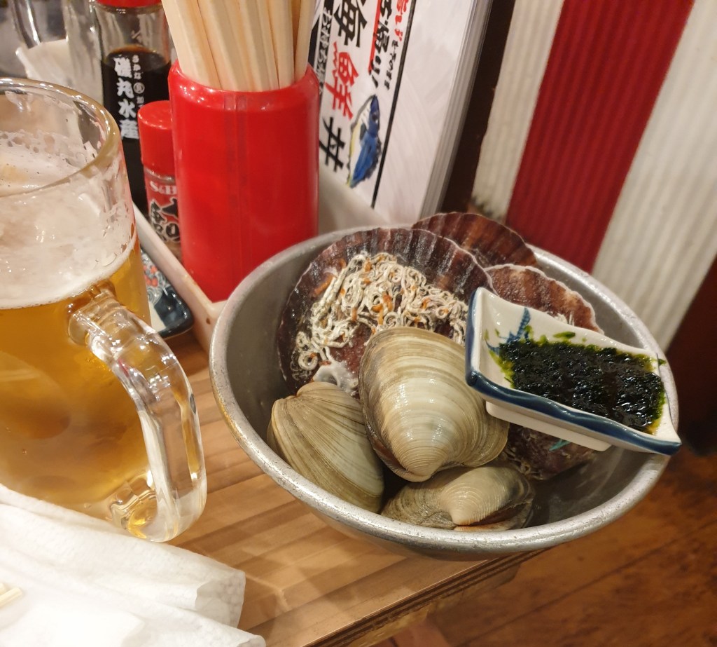So, umm. I went to an izakaya a day or two later. An old-school izakaya, again near the hotel, where the interior was still similar to “the good old days”, the owner was an old man who may have been tasting their sake a bit as well, people were smoking inside, and everyone was drinking more than eating, even though they were also eating quite a lot. I’m not sure I have ever heard Japanese peopel being so loud as they were in there. And I loved it, even if I usually get annoyed with the cacophony of many people talking and tobacco smoke everywhere. Somehow all of it made it seem more like I was suddenly in an izakaya from 50 years ago.