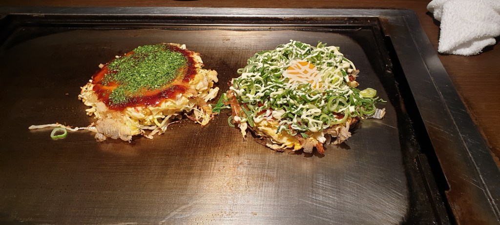 And then got my friend as my company and general guide, as he knew how everything works. He went for a basic okonomiyaki without anything much extra, whereas I couldn’t resist the temptation of trying out the slightly weird sounding cheese and pork okonomiyaki. It was good. Of course it was good. Why wouldn’t it have been good. Except that it might have been bad for my body, but it was so good for my soul!
